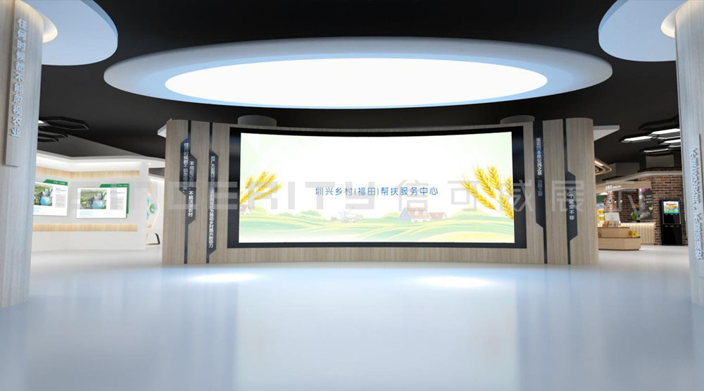 深圳(福田)振興鄉(xiāng)村消費(fèi)扶貧展示廳面積1300平米,包括“大國(guó)戰(zhàn)略”、“圳興有我”、“圳興有禮”、“圳興發(fā)布”、“圳興滋味”五大功能區(qū),整個(gè)展示館本著“節(jié)儉、樸實(shí)、不奢華”原則,通過圖文展版、實(shí)物展陳、模型展示、場(chǎng)景還原等多種形式,綜合運(yùn)用聲光電技術(shù),搭建“鄉(xiāng)村振興+創(chuàng)新性協(xié)作服務(wù)平臺(tái)。